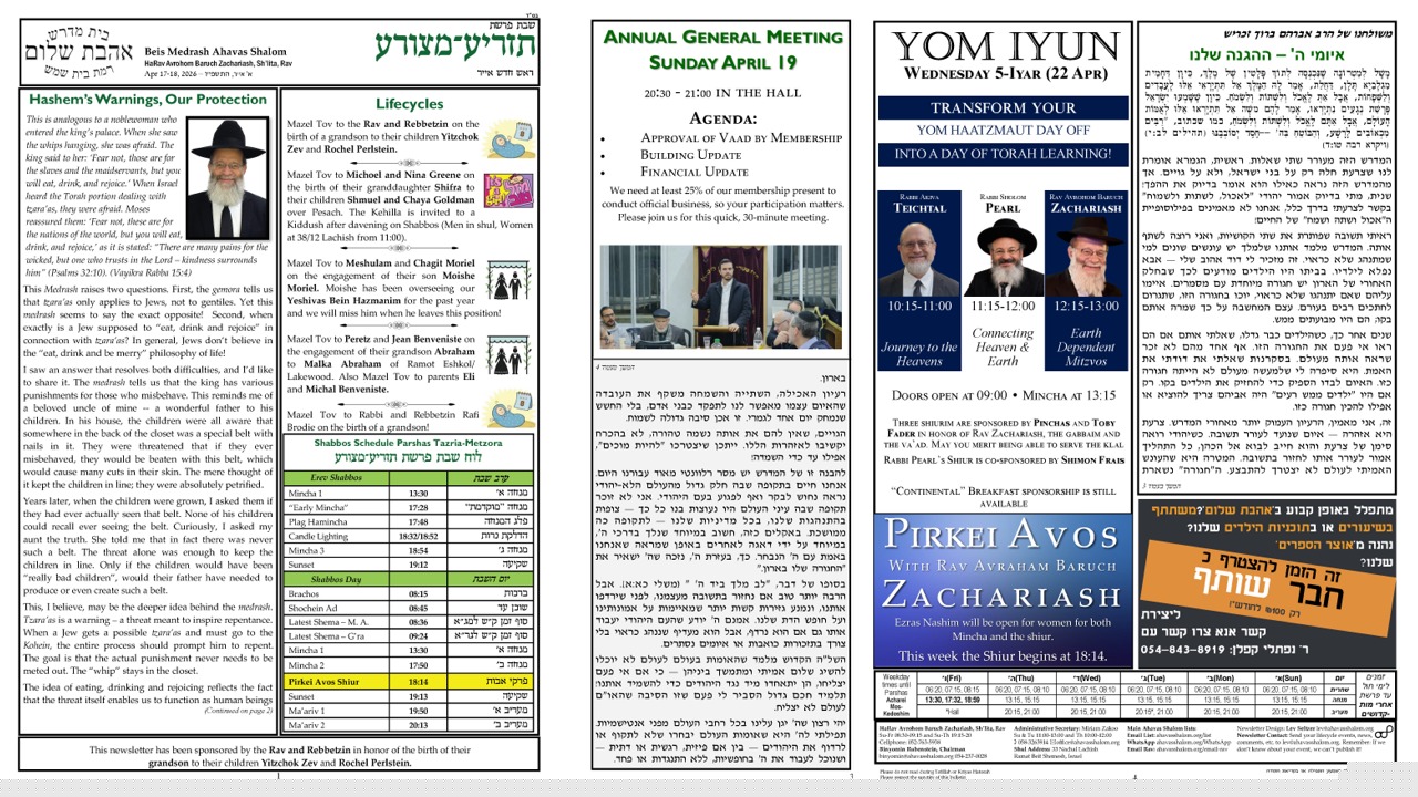 From the Desk of the Chairman We are about to enter our Sukkos, our annual reminder that Hashem runs the world and protects us 24/7. We experience this protection first-hand in our flimsy Sukkos, and then bring that thought back with us into our reinforced [...]
