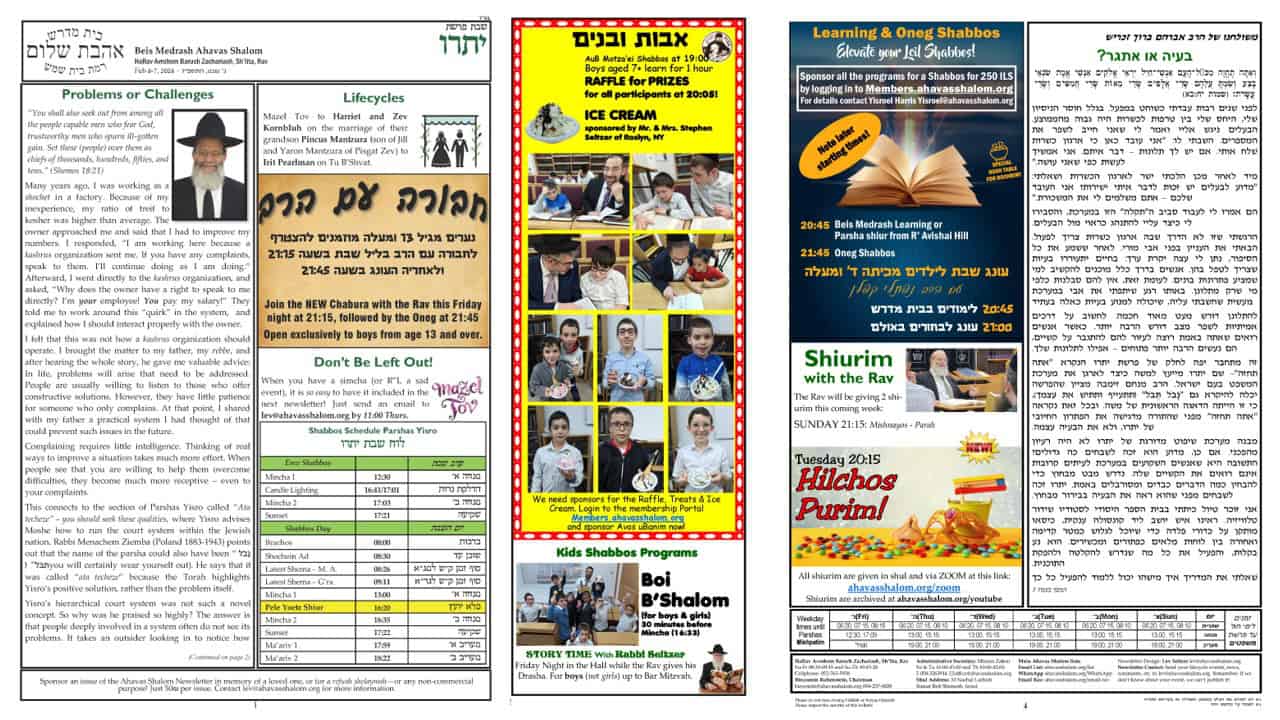 “You shall also seek out from among all the people capable men who fear God, trustworthy men who spurn ill-gotten gain. Set these (people) over them as chiefs of thousands, hundreds, fifties, and tens.” (Shemos 18:21) I would like to share a story that happened [...]