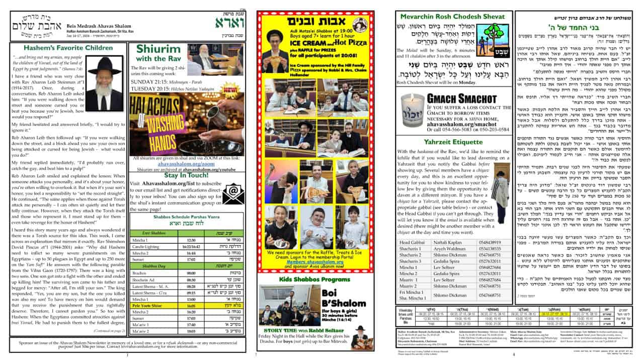“…and bring out my armies, my people the children of Yisrael, out of the land of Egypt by great judgments.” (Shemos 7:4) I have a friend who was very close with Rav Aharon Leib Steinman zt”l (1914-2017). Once, during a conversation, Reb Aharon Leib asked [...]