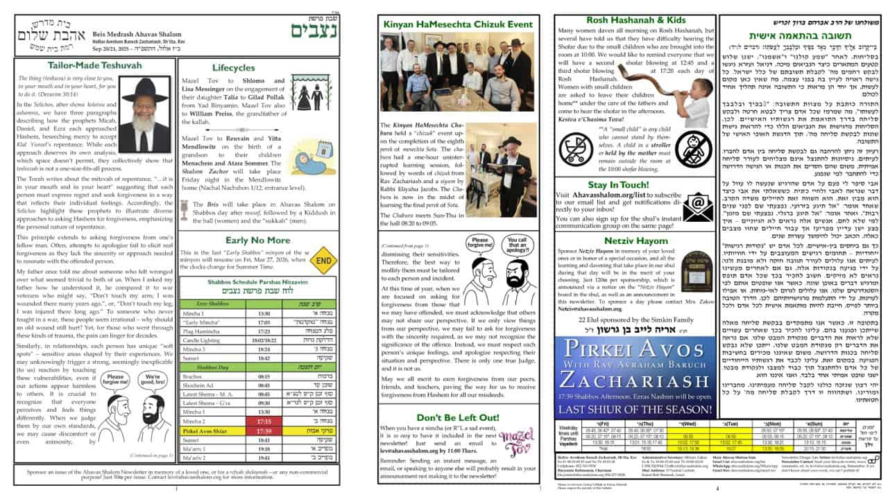 - If you have a simcha, or R”L a sad announcement, please send it to lev@ahavasshalom.org for inclusion in the newsletter and/or blasting out email/WhatsApp announcements to the kehilla.