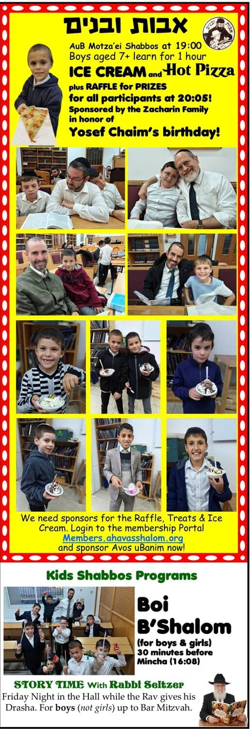 - If you have a simcha, or R”L a sad announcement, please send it to lev@ahavasshalom.org for inclusion in the newsletter and/or blasting out email/WhatsApp announcements to the kehilla.